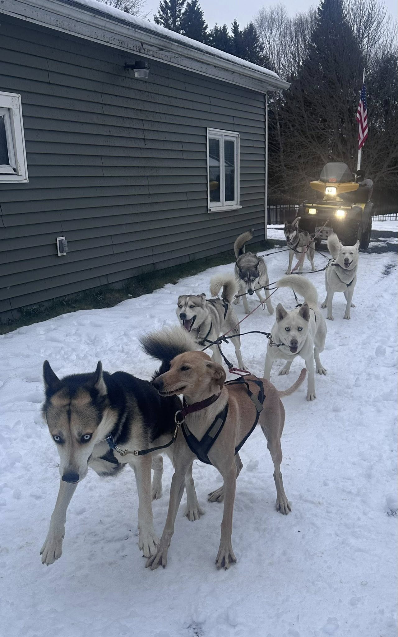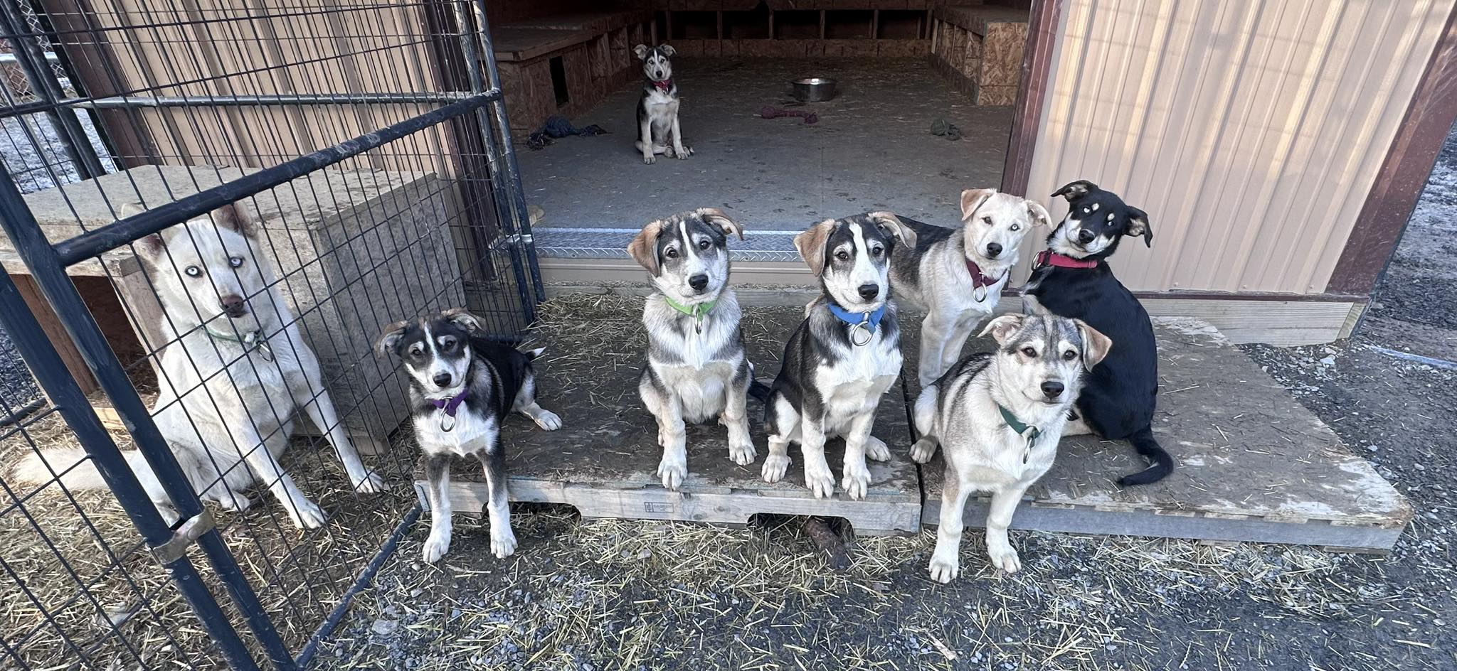 They will be 5 months old on January 16 and weigh between 40 and 50 pounds. So far, I’m very impressed by how lovable they are to humans. More so than the somewhat aloof Siberians. They are very leggy, tall, and long. All good things for speed. However, it will be a year or two before their performance can be evaluated. The future looks bright for these 8 souls: 4 Males and 4 Females.