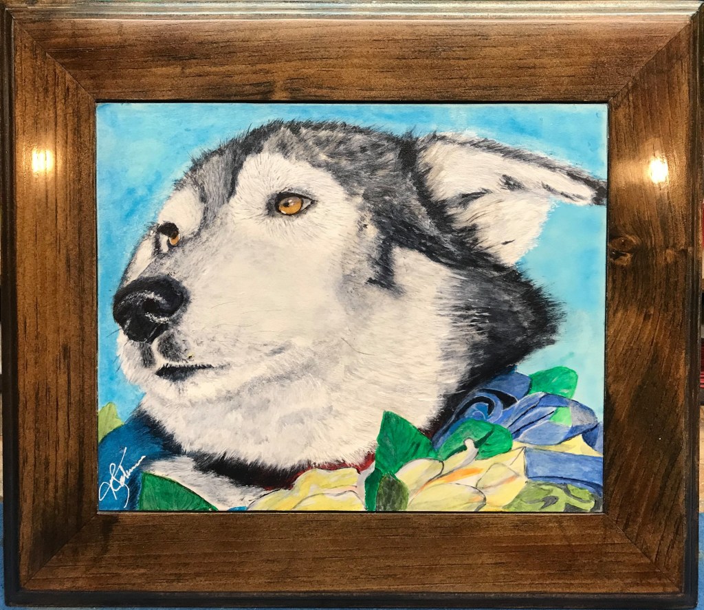I had a surprise for him. I did a painting of his famous lead dog named “Larry.” Larry was his lead dog who finished 8 Iditarods, and two Yukon Quest. He won two Iditarods and two Yukon Quest back to back.
