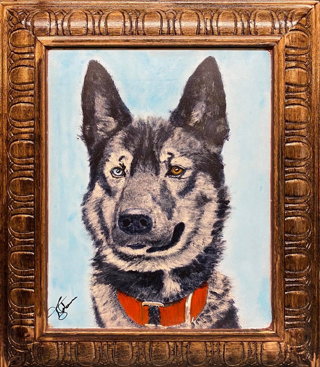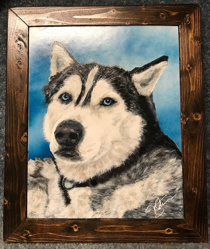 I’ve done a lot of paintings the last couple of years. Acrylic on masonite and I also make the frames. Here are a few I’ve done mostly for their owners.