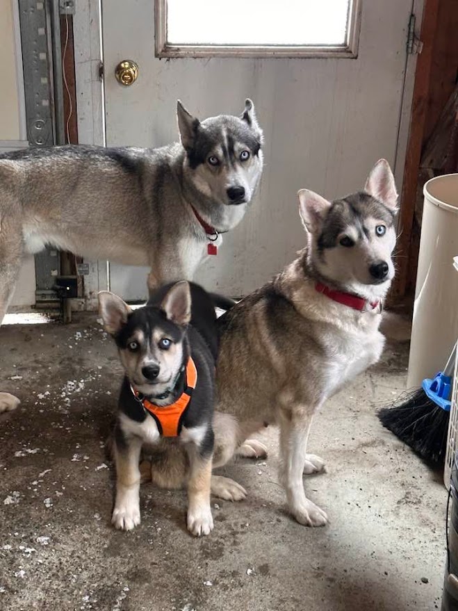 It took 4 plus years to bring the semen from California, arrange the storage and wait for the stars to align the logistics of human and dog lives. The Seppala female is named Bonkers, and through the magic of artificial insemination, a litter of 3 pups were whelped. Togo and 2 sisters, now named Duska and Mokka. They bring a much-needed infusion of DNA into the declining numbers of Seppala Siberian Sleddogs.