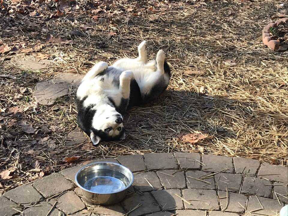 When your neighbor calls and says to check on your dog because they think she might be dead. Nope that’s a husky.